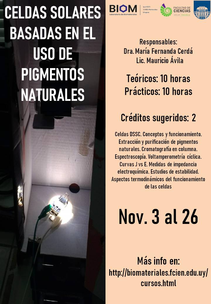 El objetivo del curso es presentar las principales metodologías relacionadas con el funcionamiento y la caracterización de este tipo de celdas solares, así como de sus principales componentes.